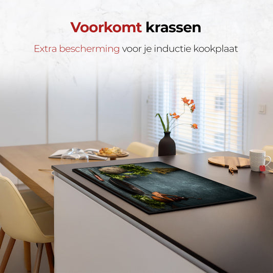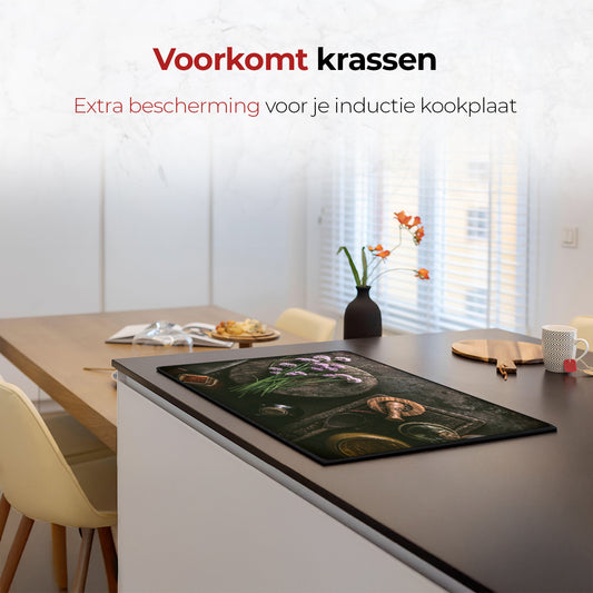 Wunderschönes Motiv und dank der mitgelieferten Aufhängehaken sofort als Spritzschutz einsetzbar. Und das praktische Reinigungstuch für das Induktionskochfeld ist auch gleich dabei.