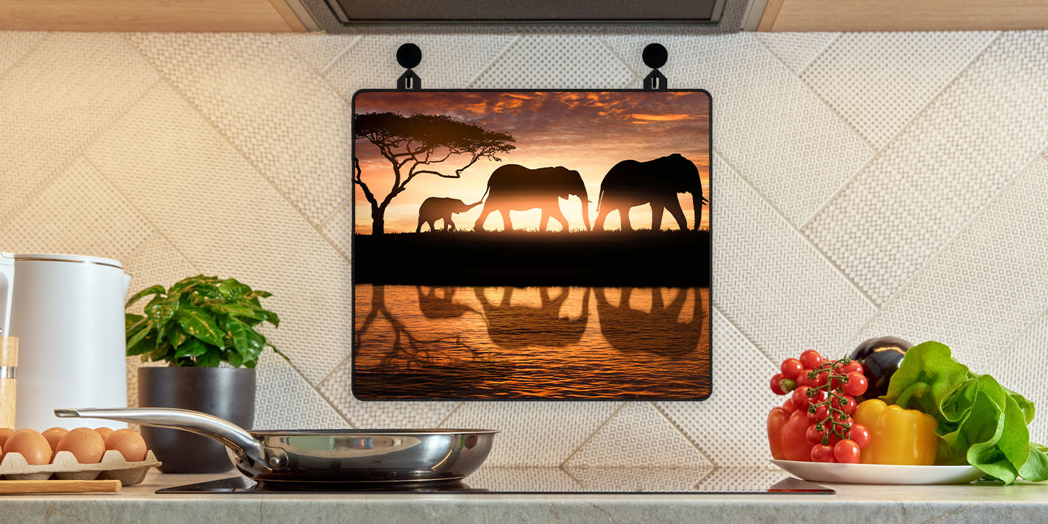 Möchtest du deiner Küche ein stilvolles Upgrade verpassen oder einfach mehr Arbeitsfläche schaffen? Dann ist diese clevere Herabdeckplatte von KitchyMist genau das Richtige für dich! Die Matte zeigt ein wunderschönes Elefantenmotiv und bringt nicht nur mehr Atmosphäre in deine Küche, sondern schützt zugleich dein Kochfeld zuverlässig.